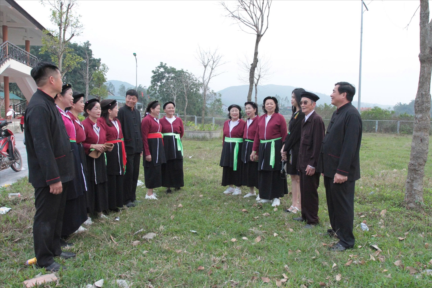 Tiệc cưới diễn ra trong không khí ấm cúng, rộn ràng. Mọi người cùng nhau nâng chén chúc mừng. Đặc biệt, hát soọng cô - làn điệu dân ca đặc trưng của người Sán Dìu với những câu hát mộc mạc nhưng sâu lắng không chỉ chúc phúc cho đôi trẻ mà còn góp phần giữ gìn bản sắc văn hóa dân tộc.