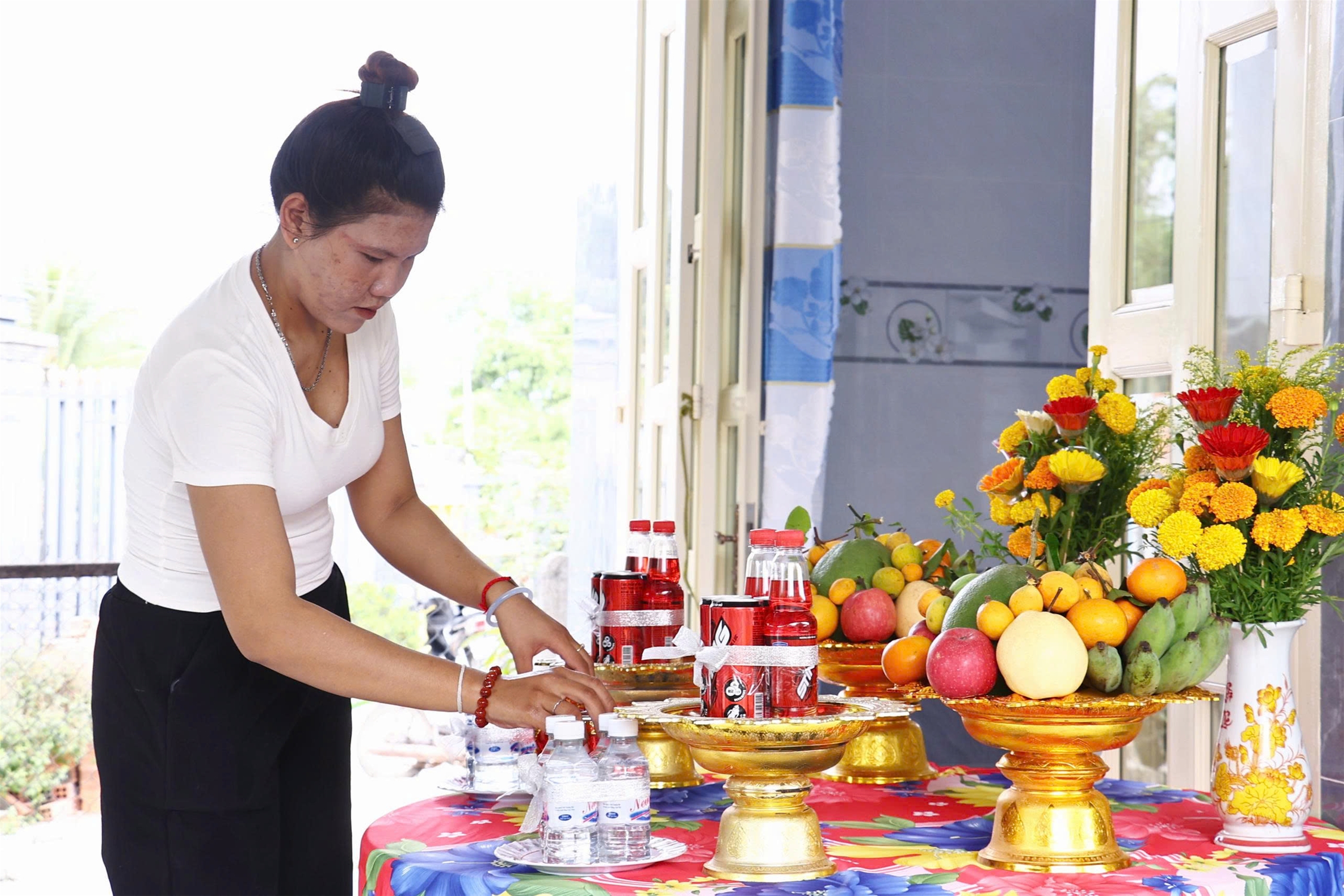 Trong ngôi nhà mới khang trang vừa được xây sau nhiều năm dành dụm, tích cóp, gia đình chị Cuốch Thị Nít (ngụ ấp Bến Cừ, xã Ninh Điền) tất bật chuẩn bị lễ vật để làm lễ tiễn đưa Têvôđa (vị tiên cai quản năm cũ) và rước Têvôđa mới. Đây là nghi thức quan trọng trong ngày Tết đầu tiên của người Khmer.