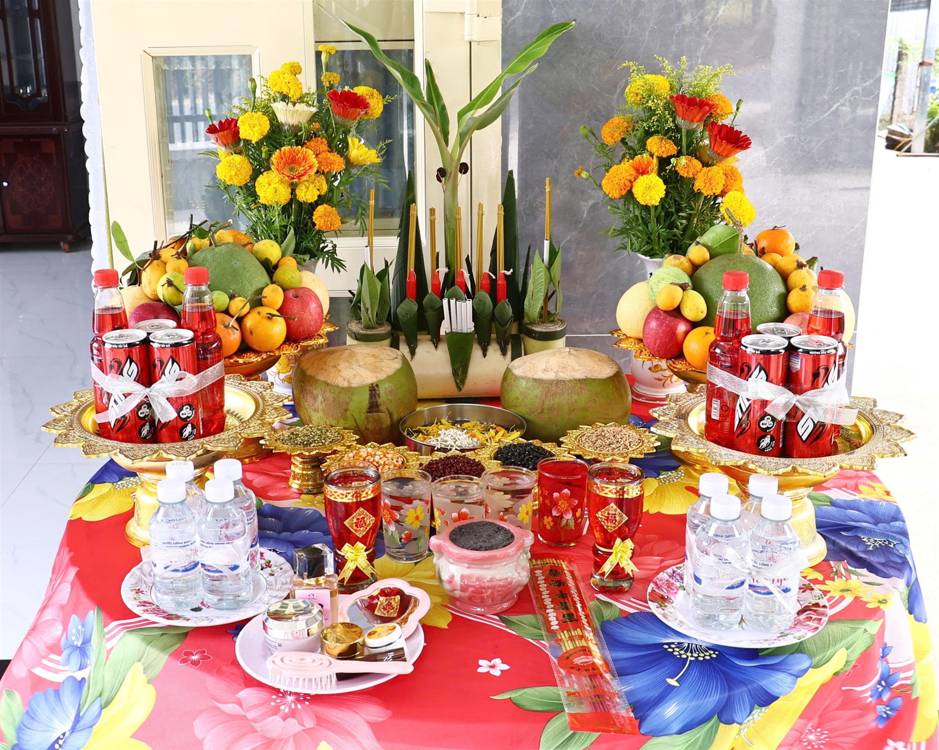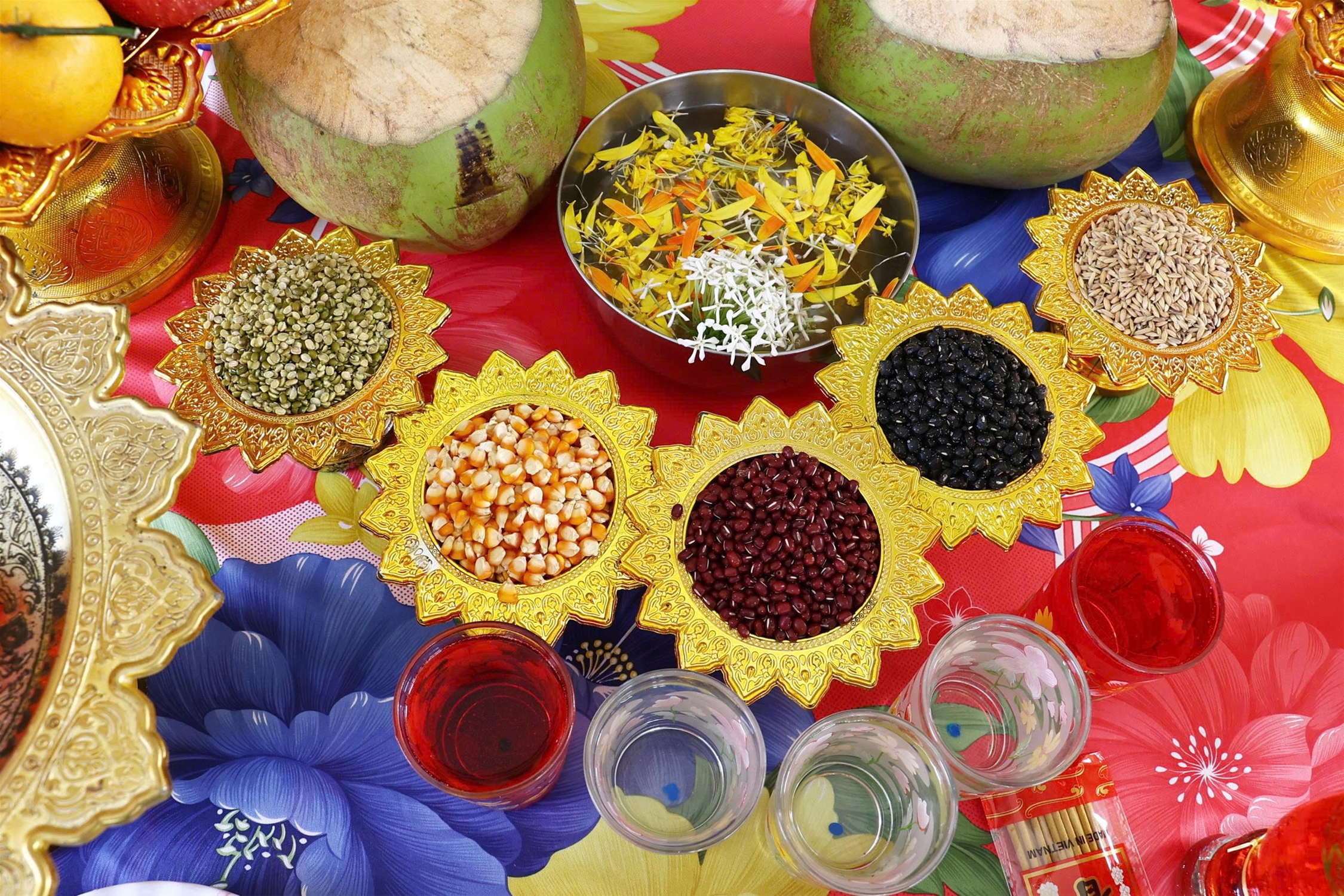 Ngũ cốc được chuẩn bị chỉn chu trên bàn lễ