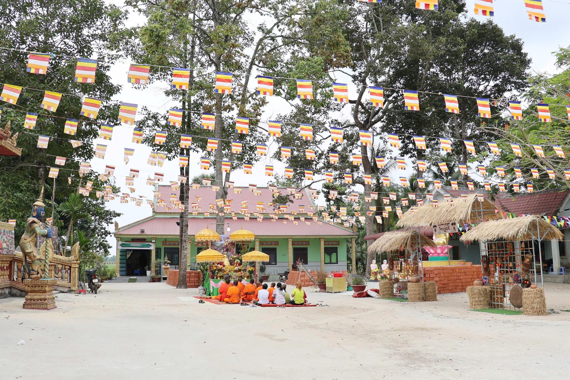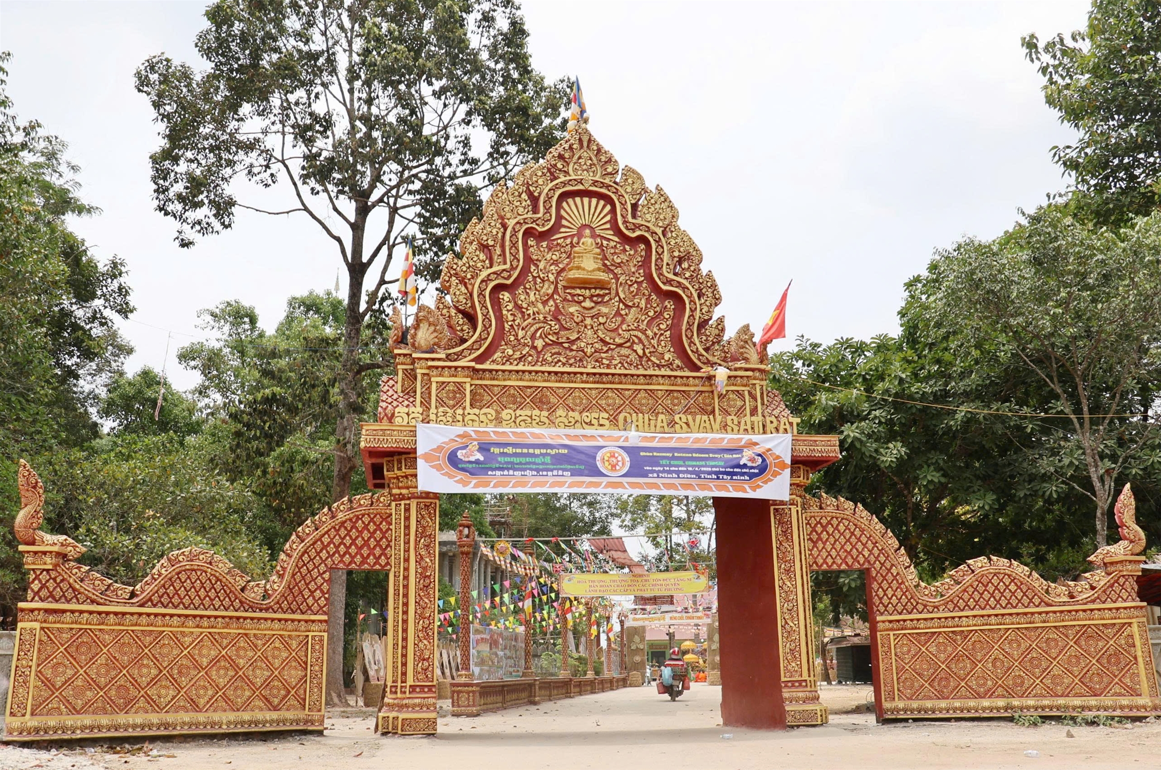 Trong dịp này, ngôi chùa Svay (hay còn gọi là chùa Sát Rát) cũng khoác lên mình chiếc áo mới rực rỡ cờ hoa, làm nổi bật nét văn hóa Phật giáo Nam tông và văn hóa Khmer độc đáo.