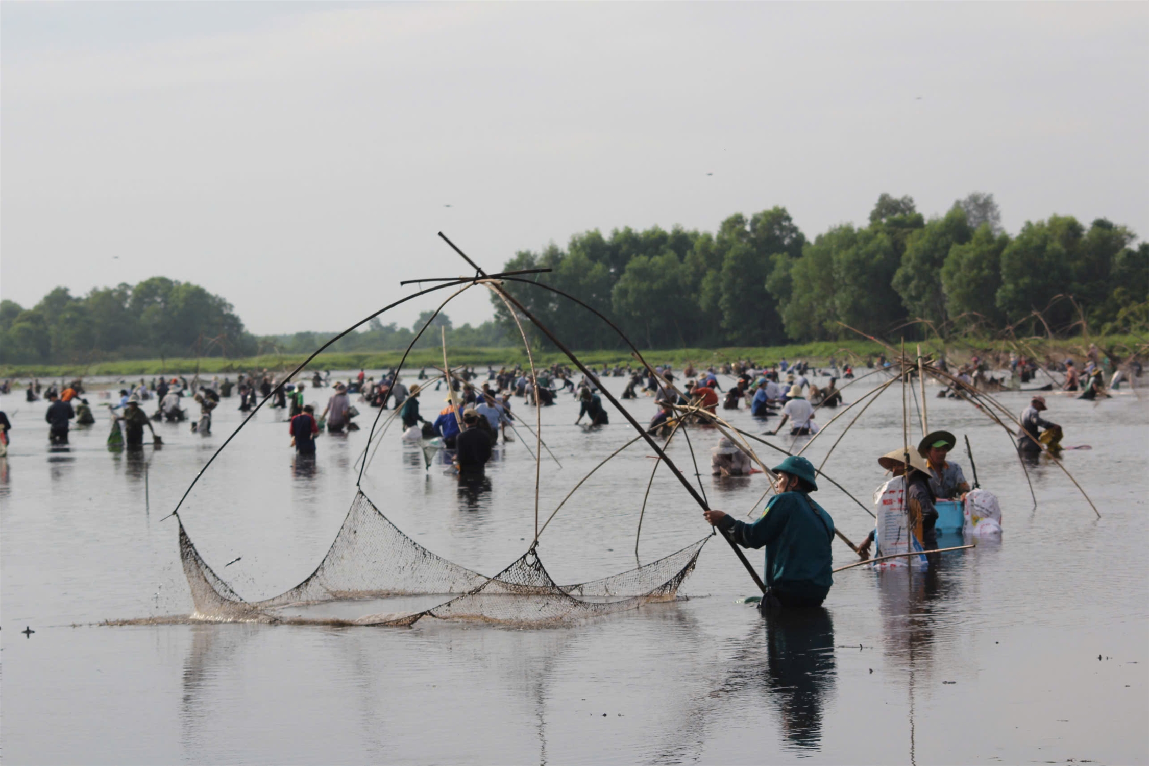Không phân biệt đàn ông, phụ nữ hay trẻ em, ai cũng hăng hái tham gia. Tay cầm nơm, chân lội bùn, mọi người cùng săn tìm “lộc trời”. Điều đặc biệt, người dân chỉ bắt những con trưởng thành, thả lại con nhỏ để duy trì nguồn lợi thủy sản.