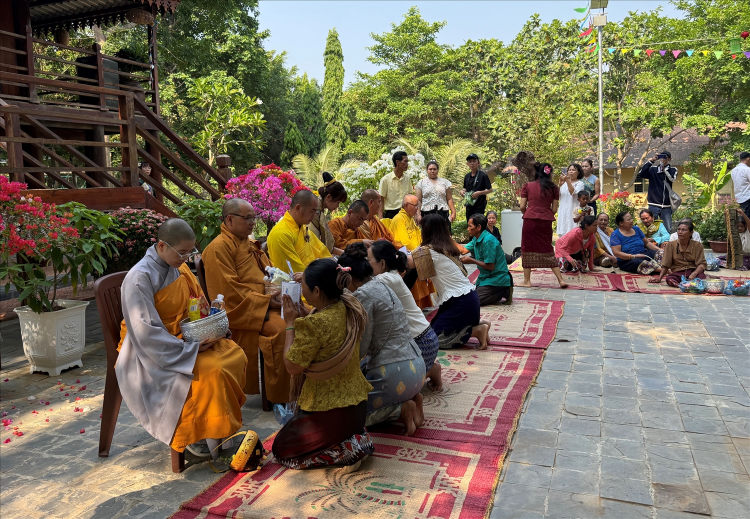 Với lòng thành kính, ngay từ buổi sớm, bà Khăm Bo Lào (63 tuổi), người Lào đã chuẩn bị chu đáo lễ gồm: Bánh, mứt, hoa, quả mang đến cúng giường các chư tăng. “Mỗi năm chỉ có một lần được dịp dâng lễ cúng dường tam bảo nên tôi muốn chuẩn bị thật chu đáo. Lễ vật không có gì quý giá, chỉ những món bình thường, với mong cầu cho cả gia đình mạnh khỏe, hạnh phúc”, bà Khăm Bo Lào nói.