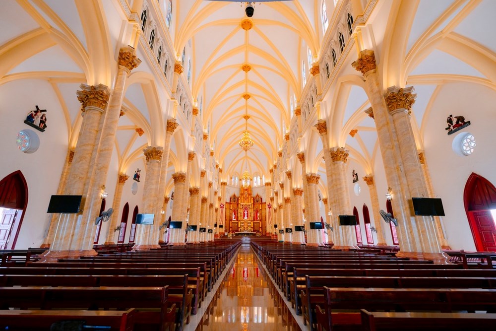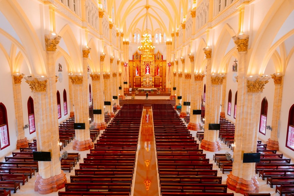 Cung thánh đường sức chứa trên 5.000 người, và dưới tầng hầm sâu 15m có sức chứa khoảng 800 người, thuận tiện để tổ chức các sự kiện lớn phục vụ giáo dân. Bên trong thánh đường là hệ thống cột trụ với đường kính khoảng 3m đủ sức nâng đỡ cho cả nhà thờ.
