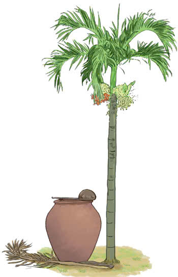Hai đứa em gái tôi có cùng một sở thích là để tóc dài. Hương cau cứ thoảng thoảng lẫn vào từng sợi tóc. Tuổi trăng tròn, hai đứa hay bối rối, ngượng ngùng khi đi đâu đó có ai buột miệng khen “Ai mà có mùi thơm dễ chịu quá!”. Giờ đây cô chị đã lấy chồng xa, tôi nhớ nó vô cùng và thật thấm thía câu thành ngữ: “Chị em gái như trái cau non”. Đã là dân xóm cau thì hầu như thằng con trai nào cũng leo trèo giỏi. Nhớ lắm nhưng hôm ba mẹ bảo trèo lên những thân cau cao tít tắp mà bẻ lấy những buồng cau lúc lỉu. Có khi gặp được tổ chim sẻ trên ngọn cây. Nhìn chúng lim dim mắt mà yêu quá đỗi. Mới thấy quê mình thanh bình đến nhường nào!