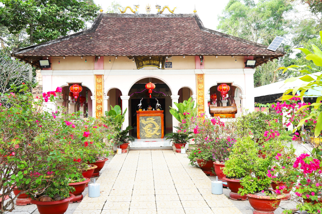 Ngôi đình thần nằm cạnh bên tháp cổ làm nổi bật giá trị văn hóa tâm linh cho khu di tích