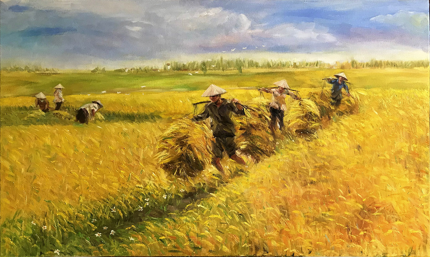 - Lan đấy à! Ừ anh chở về nhà bằng máy điện cho sóng rơm còn để rơm cho bò. - Có cả kỹ sư nông nghiệp về gặt hộ thế này thì nhất nhà Lan rồi.