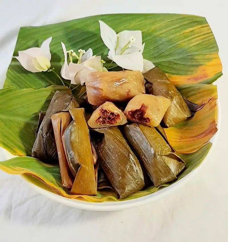 – Gói bánh bằng lá chuối, xếp vào nồi hấp và hấp trong khoảng 40 phút. Khi chín, bánh mềm, trong, thoang thoảng mùi thơm của lá chuối.
