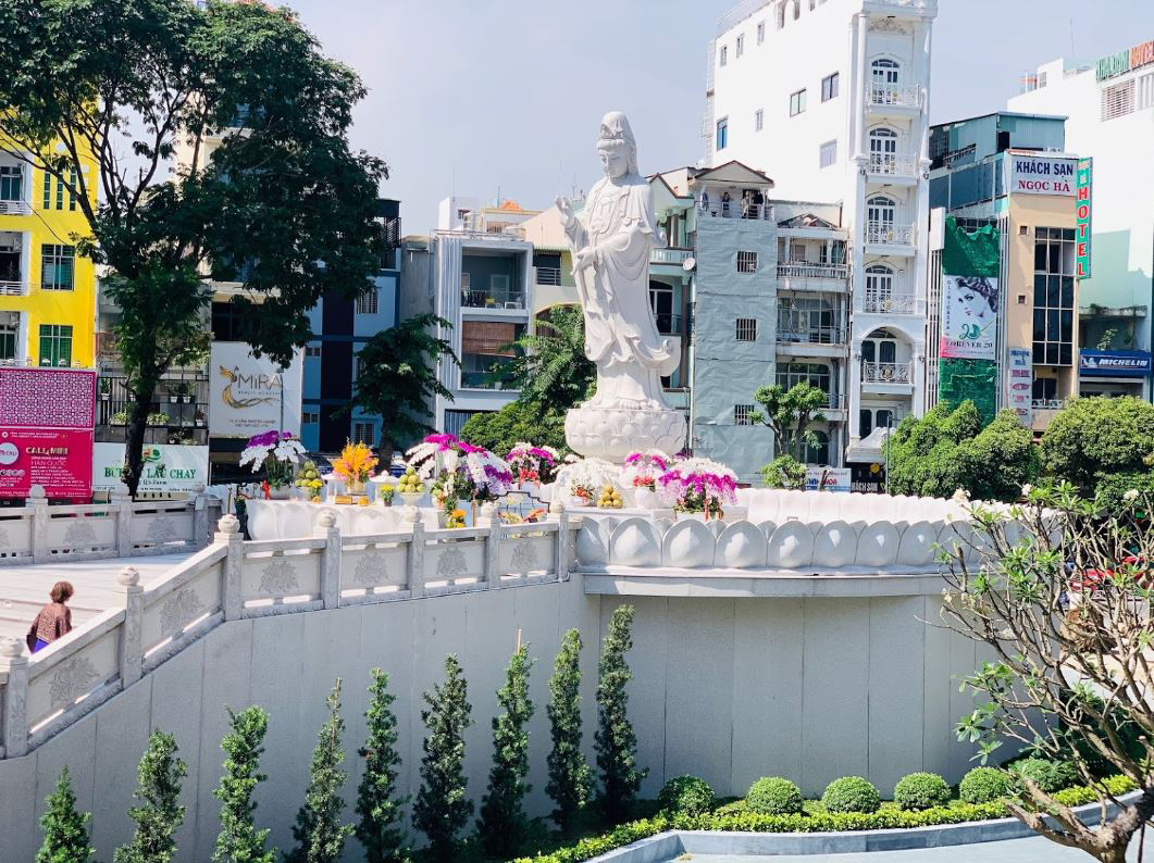 Tượng đài Bồ Tát Thích Quảng Đức trong khuôn viên chùa. Ảnh: Internet