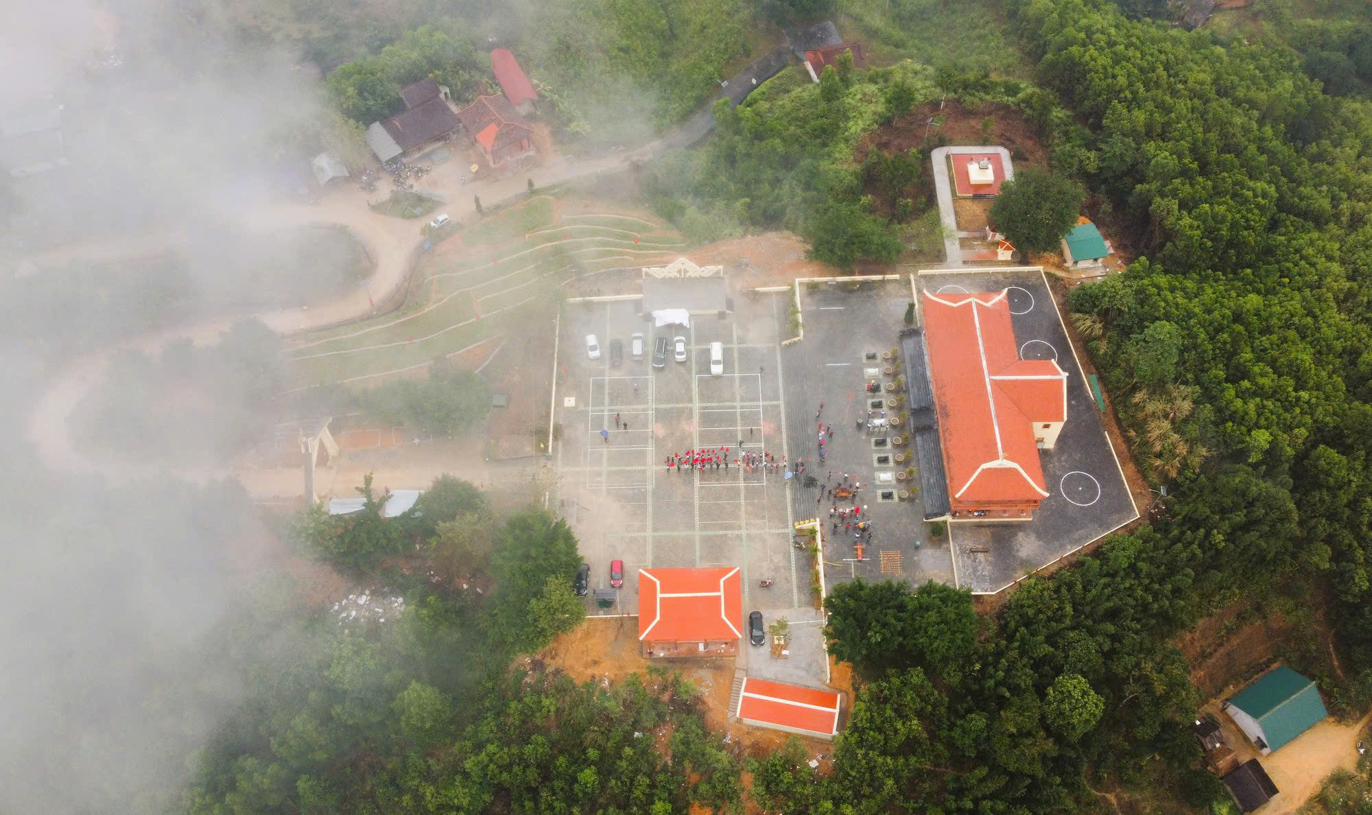 Toàn cảnh Đền Chín Gian trên đỉnh Pú Pỏm.