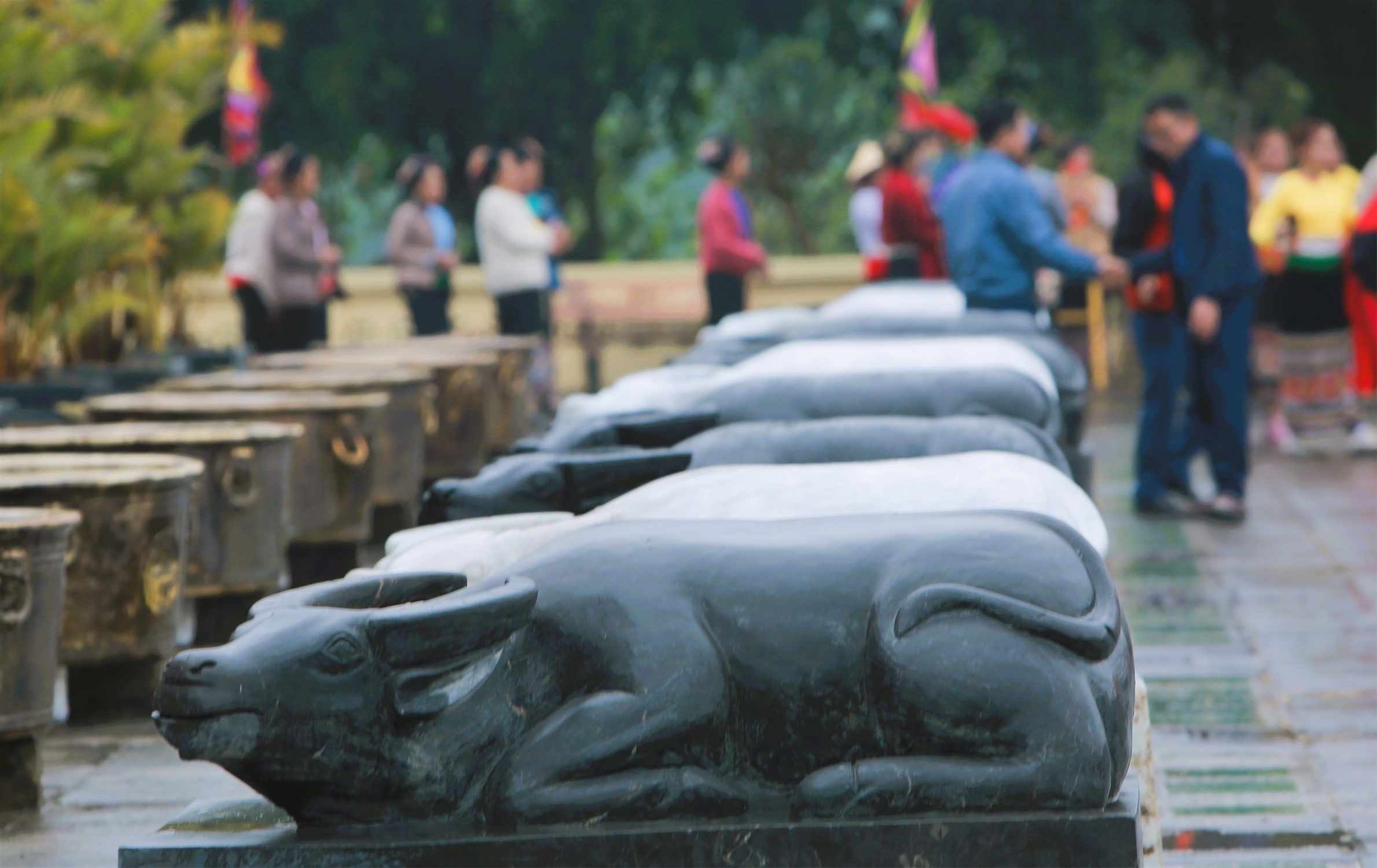 Sân đền nổi bật với hình ảnh 9 con trâu (Ảnh: int