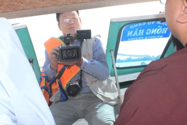 Tác giả đang ghi lại hình ảnh trên cano ra Mũi Cà Mau