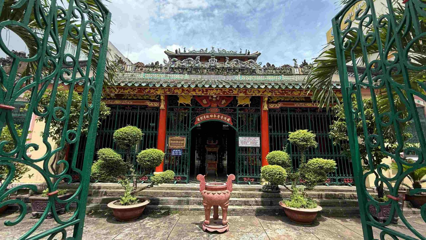 Góc trái chính điện treo chuông đồng đúc năm 1823, trên thân khắc hai hàng chữ “Gia Định thành Minh Hương xã công tạo” và “Long tập Quý Mùi thu nguyệt” – minh chứng rõ nét cho lịch sử lâu đời của ngôi đình.