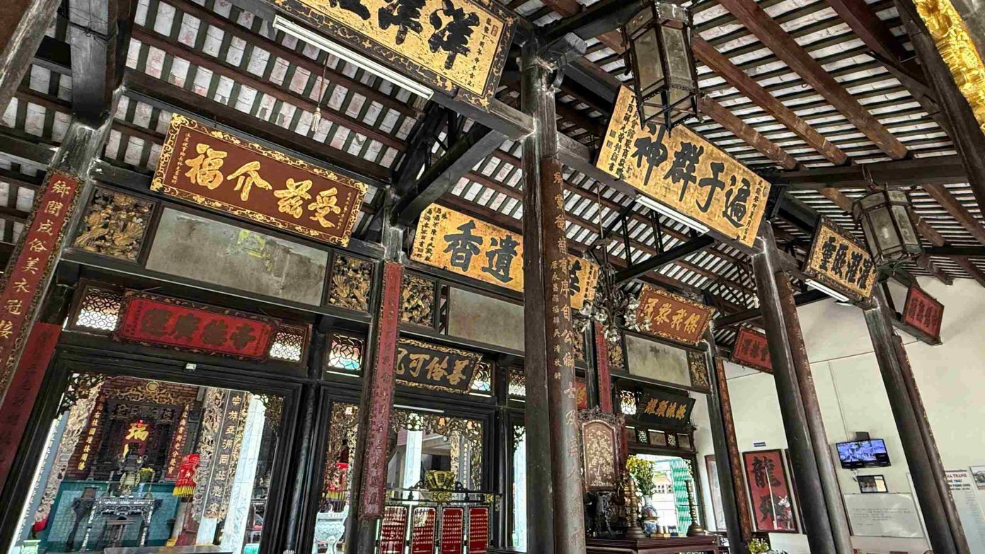 Phía sau chính điện là sân thiên tỉnh, nối liền với truy từ bằng hai cầu nhỏ. Trong truy từ có ba khám thờ lớn, trong đó khám giữa thờ “Tiền khai sáng” – những người đã góp công sáng lập làng và hội Minh Hương. Đây là không gian thể hiện rõ đạo lý “uống nước nhớ nguồn”, nơi hậu thế tưởng niệm công đức của tiền nhân qua các thế hệ.