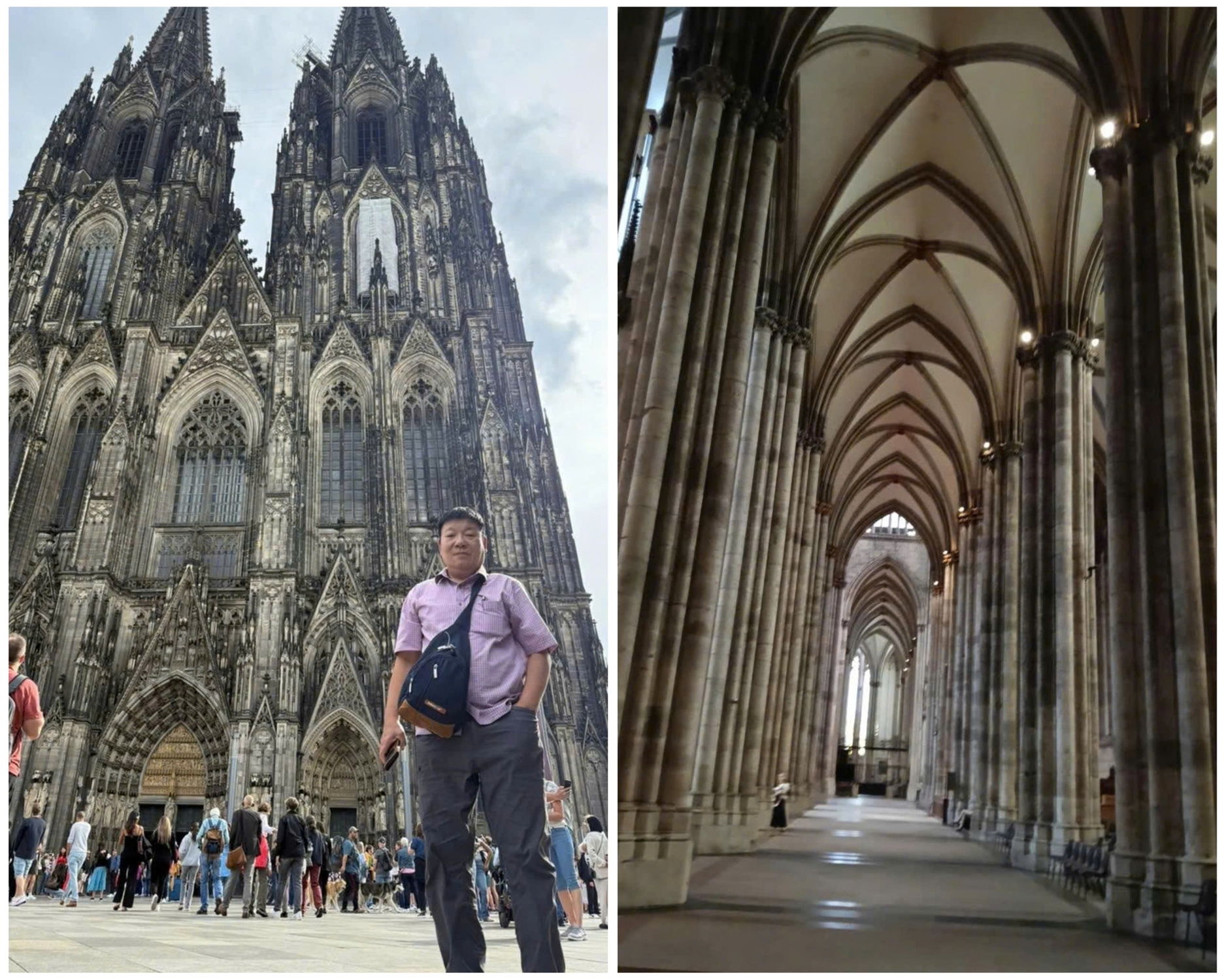 Tác giả chụp hình lưu niệm tại thánh đường Cologne, nhà thờ tháp đôi cao nhất thế giới 157m.