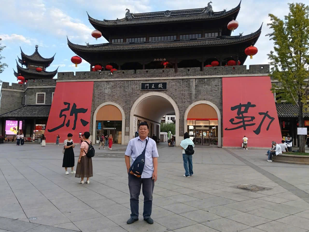 Tác giả chụp hình lưu niệm tại khuôn viên Chu Tử Lầu và trước cổng ngôi làng cổ thuộc thành phố cổ Kiến Thủy.