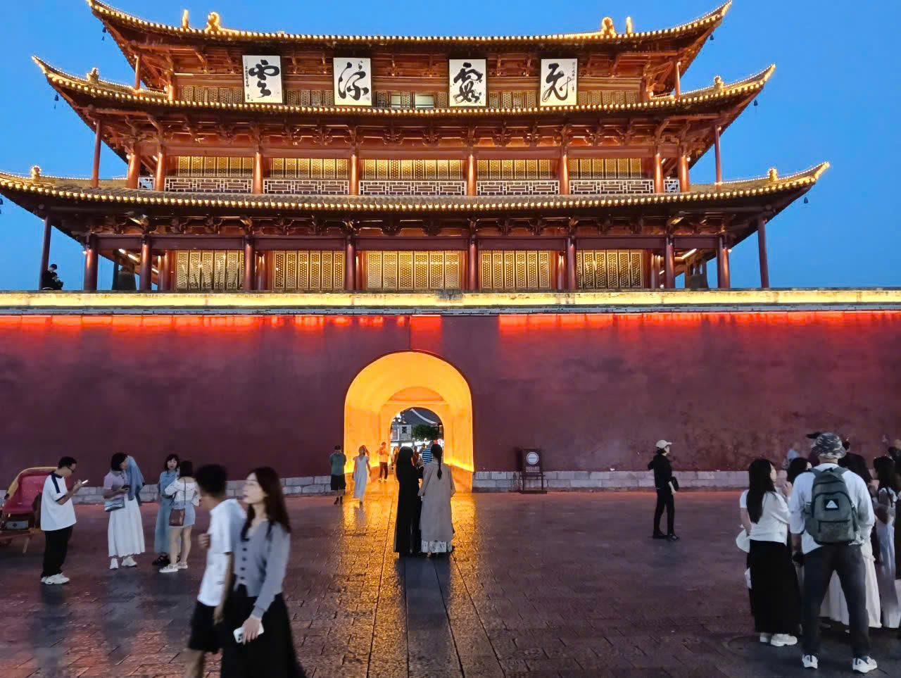 Lầu Triều Dương thuộc thành phố cổ Kiến Thủy, tỉnh Vân Nam, Trung Quốc lúc buổi tối lên đèn.