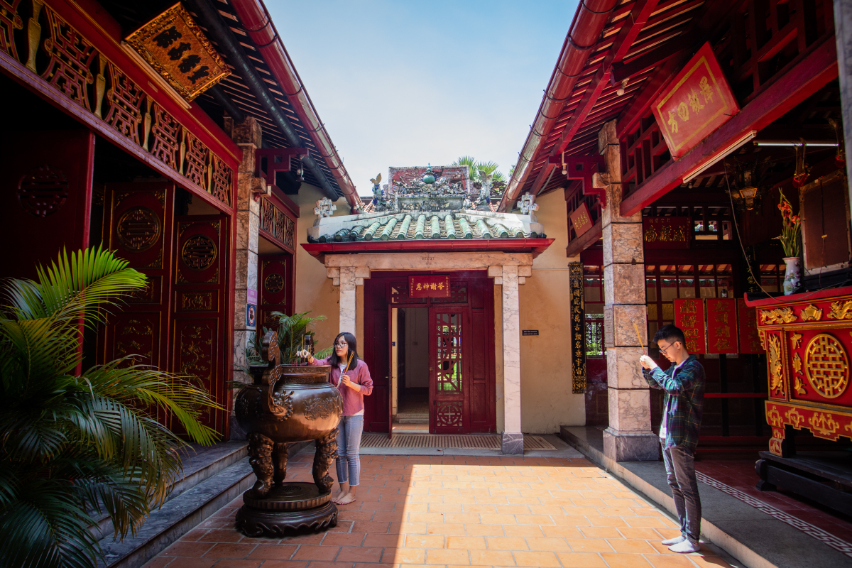Khu miếu thờ, được gọi là Thượng Công Linh Miếu, gồm tiền điện, trung điện và chính điện, với sắc đỏ và vàng chủ đạo.