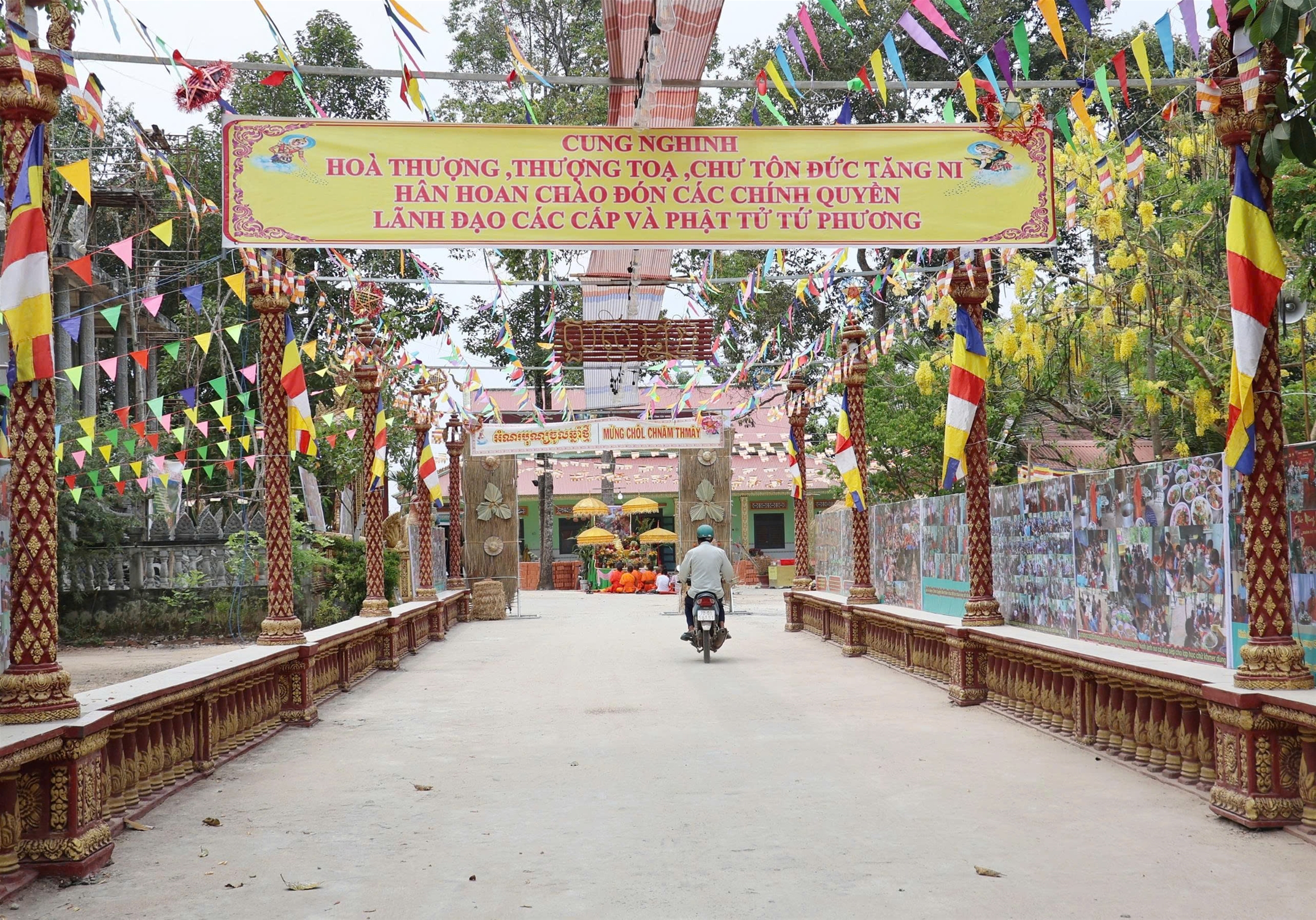 Trong dịp này, ngôi chùa Svay (hay còn gọi là chùa Sát Rát) cũng khoác lên mình chiếc áo mới rực rỡ cờ hoa, làm nổi bật nét văn hóa Phật giáo Nam tông và văn hóa Khmer độc đáo.