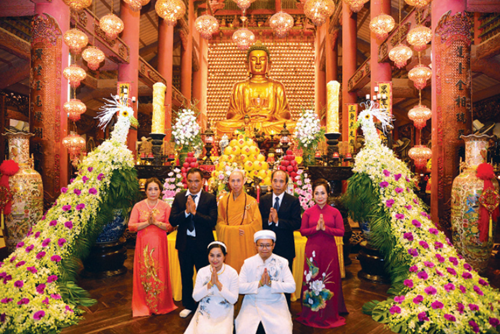Trong những năm gần đây, xu hướng mới được nhiều bạn trẻ hoan hỉ đón nhận và hưởng ứng một cách đầy tự hào, giống như một phước lành mà chỉ những em may mắn, được sinh ra trong các gia đình Phật tử thuần thành mới được thừa hưởng, đó là việc tổ chức lễ đính hôn tại chùa, được gọi là lễ Hằng thuận. (Ảnh: Internet)