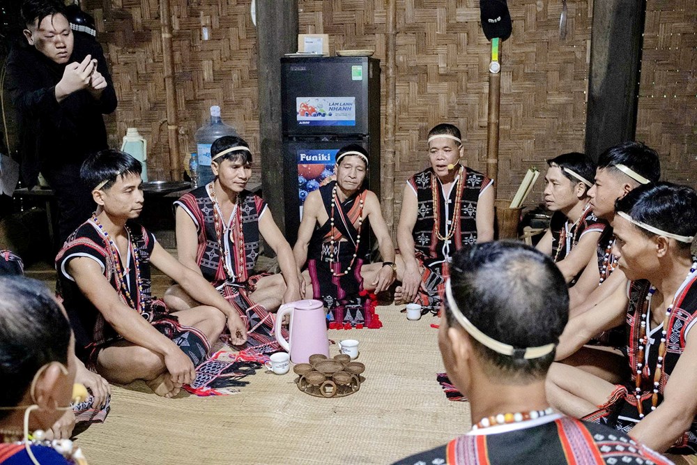 Sau đó, già làng ở Sông Kôn tổ chức họp để nghe hai cụ cử đi mời bà con ở xã Đông Giang báo cáo tình hình như: thời gian, số lượng khách ở xã Đông Giang đến Sông Kôn...