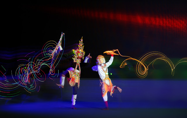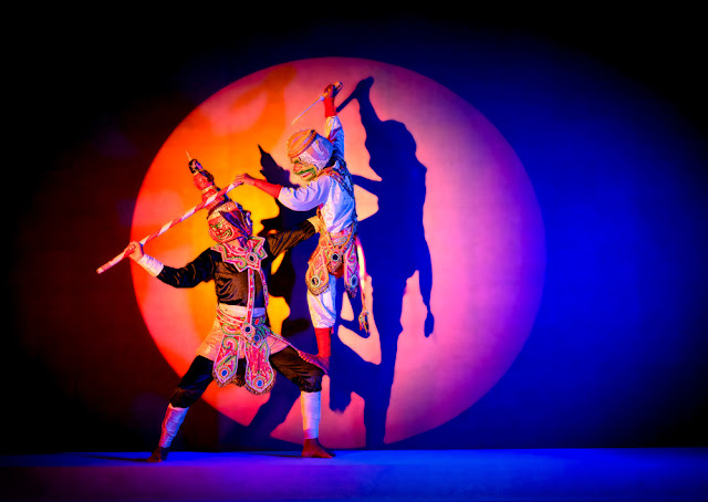 Tạo hình nhân vật Chằn Krông Riêp và nhân vật nữ chính Sita trong múa Chằn của đồng bào Khmer.