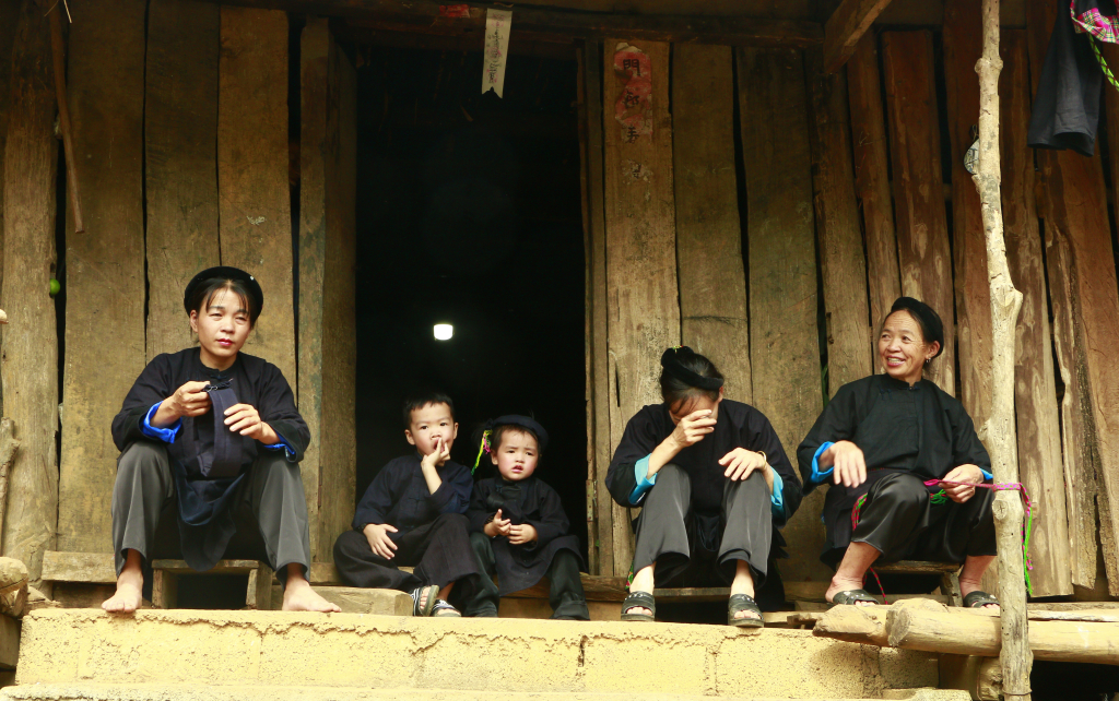 Người Nùng Vẻn bên ngôi nhà sàn truyền thống ở xóm Cà Tiểng, xã Tổng Cọt.