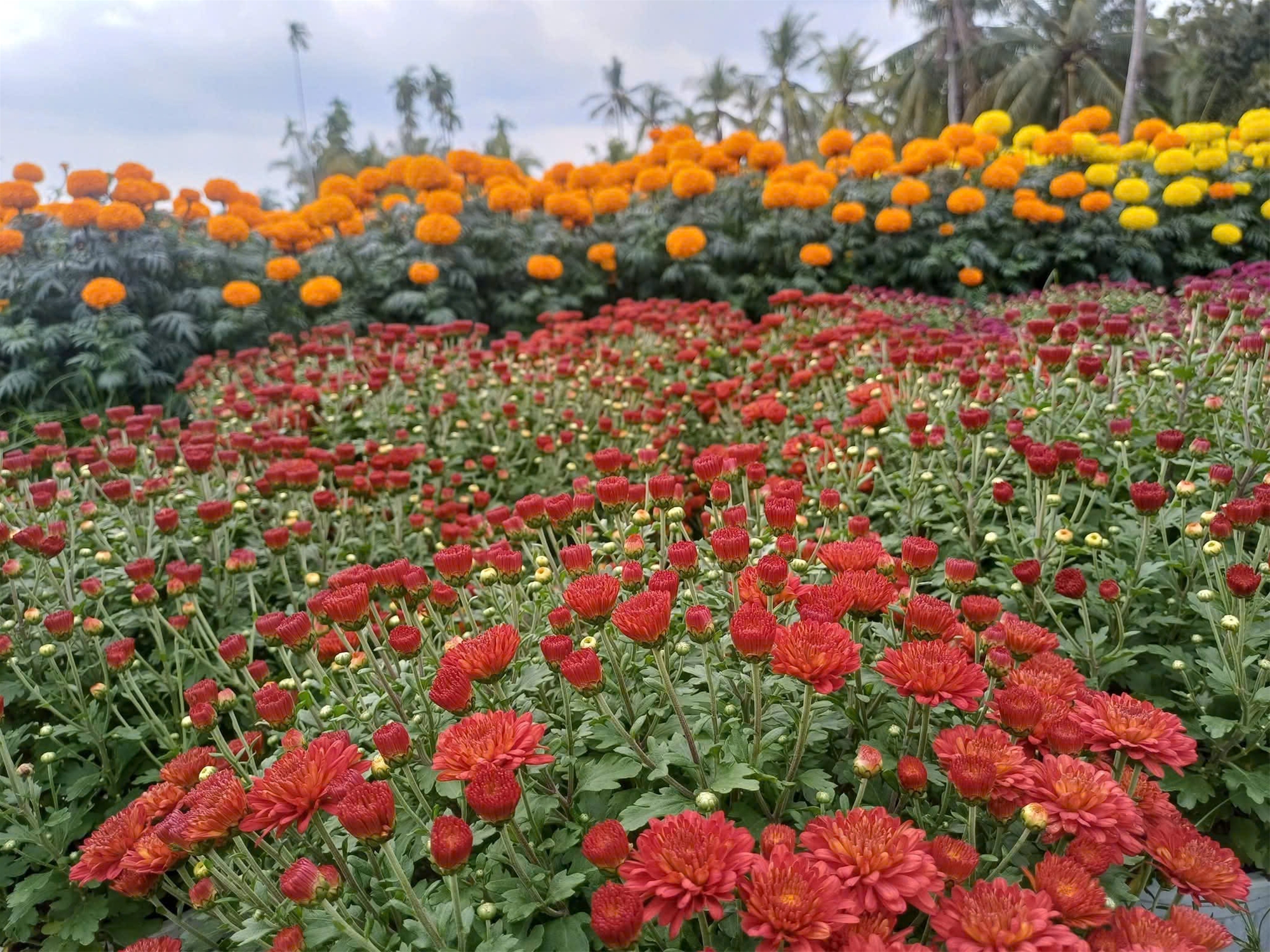 Sa Đéc trồng đa dạng các loại hoa ngắn ngày như vạn thọ, cúc mâm xôi, đồng tiền, yến dạ thảo, lay ơn, hướng dương… cùng nhiều giống hoa hồng đủ màu sắc. Trong đó, cúc mâm xôi tròn đều, vàng rực luôn là lựa chọn quen thuộc của nhiều gia đình mỗi dịp xuân về. Những vườn hoa nở rộ cũng trở thành điểm đến thu hút du khách tham quan, chụp ảnh, góp phần làm sôi động thêm không khí Tết.