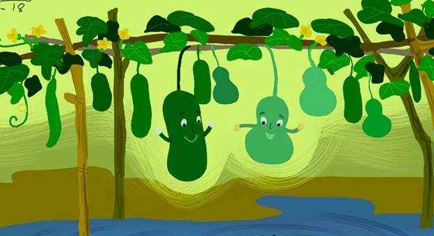 - Ê...quả bầu tròn, sao không lăn theo đi ?